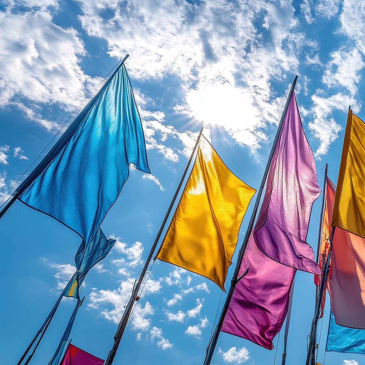Unsere Fahnen und Fahnenmasten bestehen aus wetterfesten, UV-beständigen Materialien für brillante Farben und langlebige Stabilität. Hochwertige Verarbeitung und robuste Konstruktionen garantieren eine erstklassige Präsentation – perfekt für den dauerhaften Einsatz bei jedem Wetter und an jedem Standort.